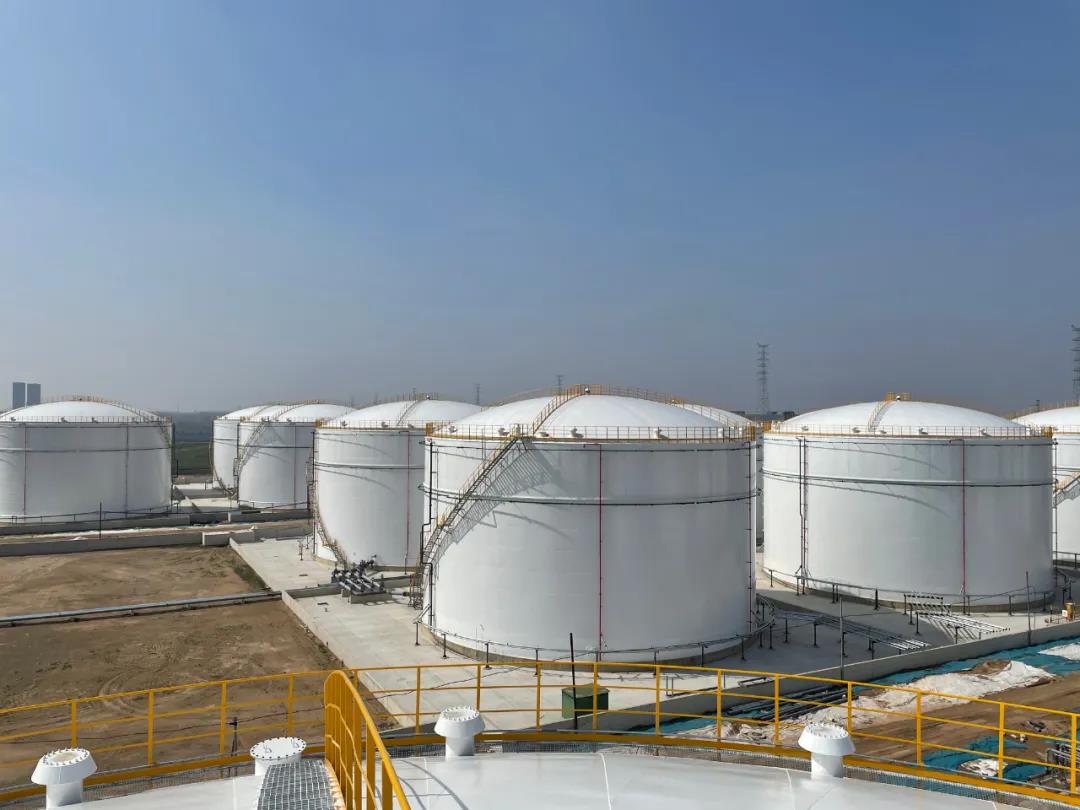 國家成品油儲備能力建設工程自開工至今約施工19個月,嚴格按公司管理規定及項目質量、安全管理辦法認真落實基礎工作,從進度、資金等各方面進行把控。截至目前,儲罐工程除鋼浮盤防腐全部結束,鋼浮盤防腐完成40%,場區內建筑物及構筑物工程完成80%,消防工程完成80%,給排水及采暖工程完成70%,總圖工程完成80%,工藝管道及設備工程完成80%,電氣、自動化儀表工程完成60%。場區安防自控調試及試運行計劃5月末開展,場區內各類工程預計6月末全部結束,達到投產條件。